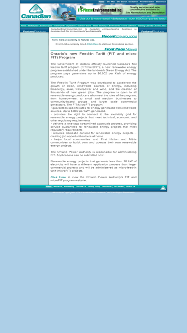 canadianenvironmental.com - a comprehensive resource of canadian environmental management information and resources related to industry. features of canadianenvironmental.com include canadian environmental management information; easy access to environmental legislation and guidelines; an environmental product and service directory; a discussion forum related to environmental management; a monthly e-mail newsletter, and environment related job openings across canada.