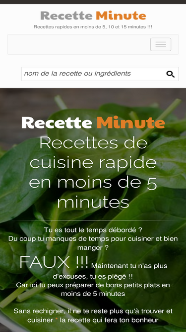 recette minute est un site de recettes de cuisine spécialisé dans la recette rapide. cuisinez en quelques minutes tous vos plats préférés.