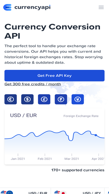 Currencyapi.com is a free, reliable & feature complete currency exchange rates API. 170+ world currencies & 60 second update rate.