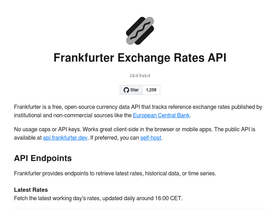 Frankfurter is a free, open-source API for exchange rates. Access current and historical currency data, and more.