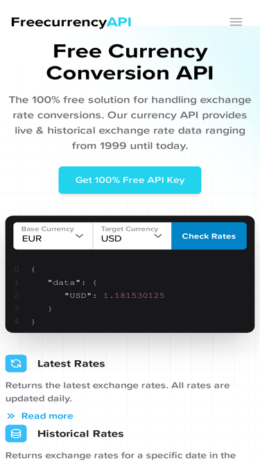 free api for real time and historical foreign exchange (forex) rates for your business.