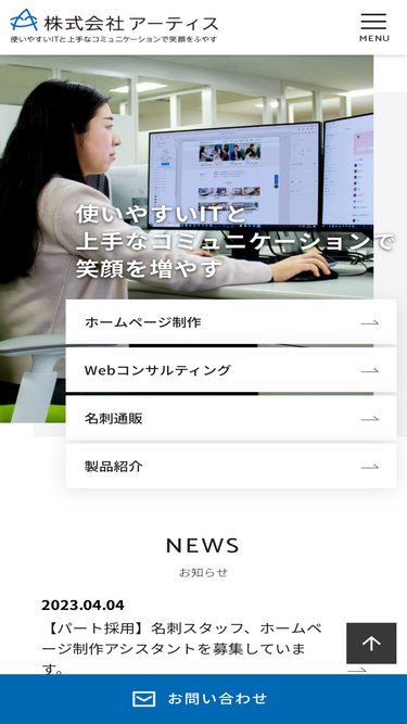 44%株式会社アーティス(静岡県浜松市)は、ホームページ(webサイト)制作、webコンサルティング・マーケティング、システム開発などを行っています。