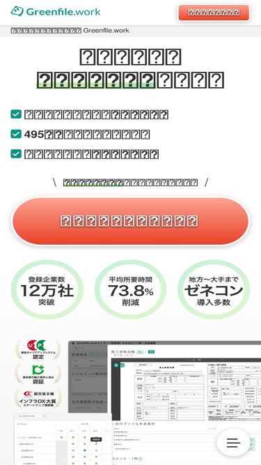 Greenfile.workは、施工体制台帳や作業員名簿、再下請負通知書など、安全書類(グリーンファイル)にかかる時間を73.8%削減した効率化サービスです。