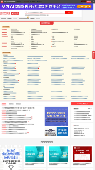 60%圣才英语学习网提供大学生英语竞赛、英语翻译资格考试、pets考试、托福雅思、剑桥少儿英语、大学英语四级、英语六级、专四专八考试报名时间、考试时间、成绩查询、准考证打印、合格分数线等考试信息,同时还有历年真题、题库、考前冲刺、全套资料等考试辅导资料