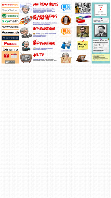 86%ce site comporte différents outils de calcul mathématique intéréssants et recouvre la plupart des notions mathématiques et vous aidera à faire des calculs en ligne