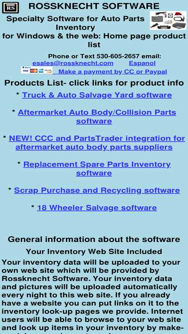 specialty software for auto parts inventory: salvage yard, auto parts store, aftermarket auto body/collision parts, for windows & the web: home page product list