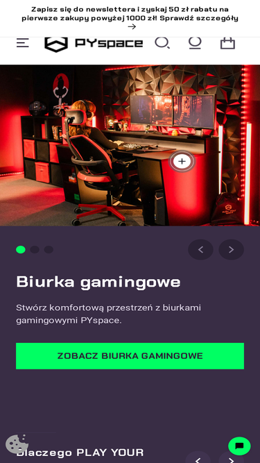 67%Play Your Space to marka oferująca kompletne wyposażenie mebli do pokoju gracza. Spełnij swoje marzenia i stwórz swój idealny gaming room. W naszej ofercie znajdziesz biurka gamingowe, regały, półki, łóżka i wiele więcej. Oferujemy dostawę z wniesieniem.