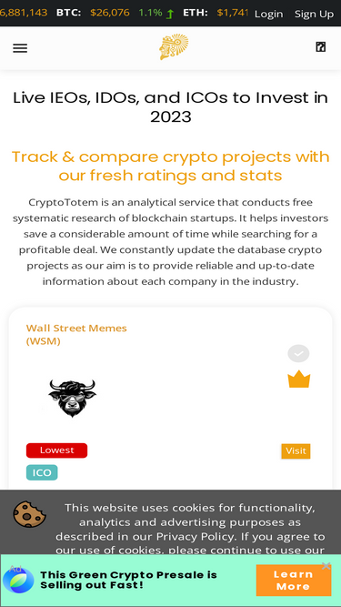 Explore the best launchpads (IDO and IEO platforms) that support promising tokens and blockchain ecosystems. Stay up to date on all crypto projects on CryptoTotem.