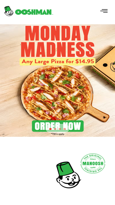 Read the OOSHMAN Terms & Conditions covering order surcharges, delivery rules, payment policies, dietary disclaimers, rewards & promotional offer terms.