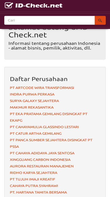 id-check.net - dapatkan informasi tentang perusahaan indonesia: kontak, aktivitas, alamat.