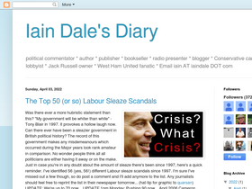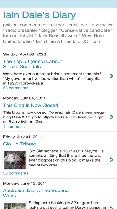 political commentator * author * publisher * bookseller * radio presenter * blogger * Conservative candidate * former lobbyist * Jack Russell owner * West Ham United fanatic * Email iain AT iaindale DOT com