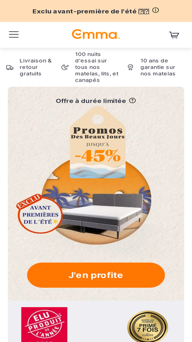 Ensembles literie ✓ 100 nuits d'essai ✓ 10 ans de garantie ✓ Satisfait ou remboursé ➤ Acheter en ligne dès maintenant! - 1 lit Emma Select, élu Produit de l'année 2025; 1 matelas Emma Hybride II ou Hybride Premium II ; 2 oreillers Nuage; 1 protège-matelas Emma; 1 couette Nuage Emma; 1 parure de lit 100% Percale de Coton : 1 housse de couette et 2 taies d'oreiller