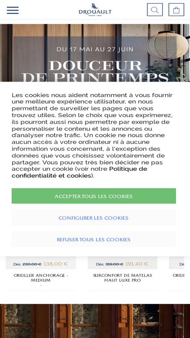100%La Maison de l'Oreiller, boutique spécialiste à Paris de l'oreiller et de la couette haut de gamme depuis 2001