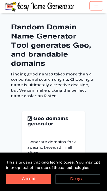 random domain name generator tool generates shopify, geo, fnln, and brandable domains with appraisal and seo metrics ... geo domain generator & availability check tool.