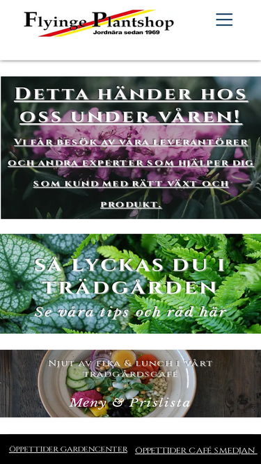 Skånes största Gardencenter med allt för din trädgård samt ett mysig café. Även partiförsäljning. Jordnära sedan 1969! www.flyingeplantshop.se