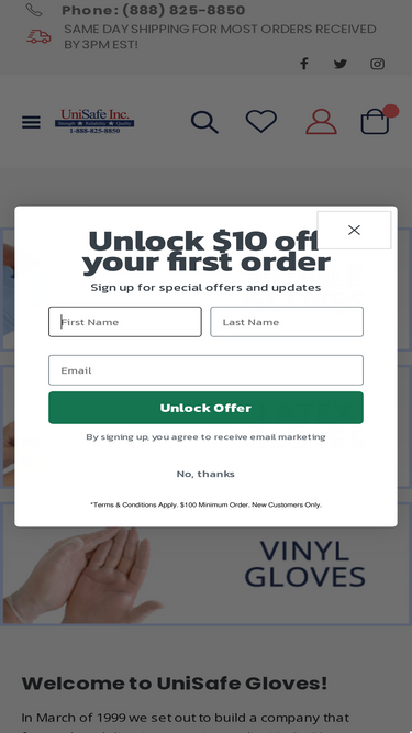 75%UniSafe Gloves offers many businesses and government agencies that buy Disposable Nitrile Gloves, Latex Gloves, and Vinyl Gloves open account terms. Please contact us on how you can setup your NET30 account and issue purchase orders.