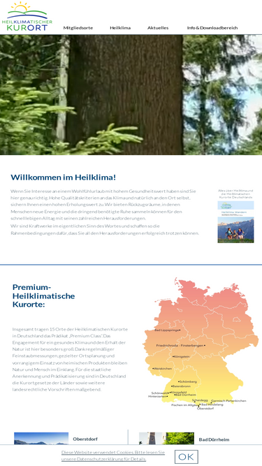 100%der verband der heilklimatischen kurorte deutschlands e.v. stellt sich und seine mitglieder vor. über 40 gemeinden in ganz deutschland fürhren das prädikat "heilklimatischer kurort". die auszeichnung steht für bestes klima und perfekte erholung.