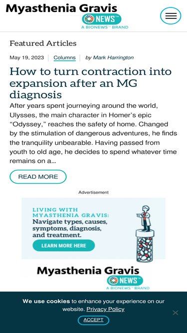 100%Learn about myasthenia gravis including symptoms, diagnosis, treatment, patient stories, & more from a myasthenia gravis community perspective.