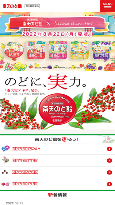つらいせき、のどの痛みに効く、医薬品の「南天のど飴」ブランドサイトです。南天のど飴の効き目やおすすめの情報などを公開しています。