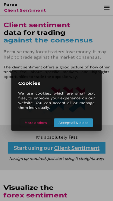 ai-driven free client sentiment and contrarian indicator for 35+ markets. use our unique forex sentiment analysis to understand the market sentiment and apply the contrarian approach when trading.