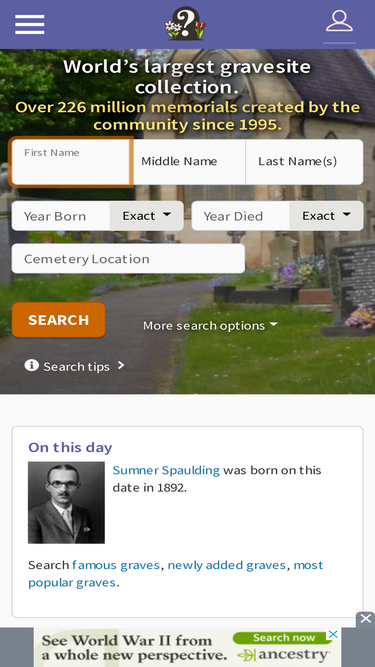 95%The World’s largest gravesite collection. Contribute, create and discover gravesites from all over the world. Member Profile: 𝓕𝓻𝓸𝓶 𝓶𝔂❤𝓡𝓸𝔁ღ𝓔𝓭, a Find a Grave.
