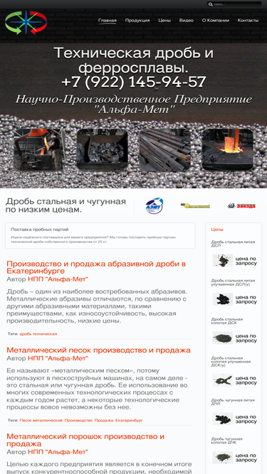 63%производство и продажа технической дроби: стальной и чугунной, является основным видом деятельности ооо нпп альфа-мет. дробь литая и колотая и ферросплавы по самым низким ценам.