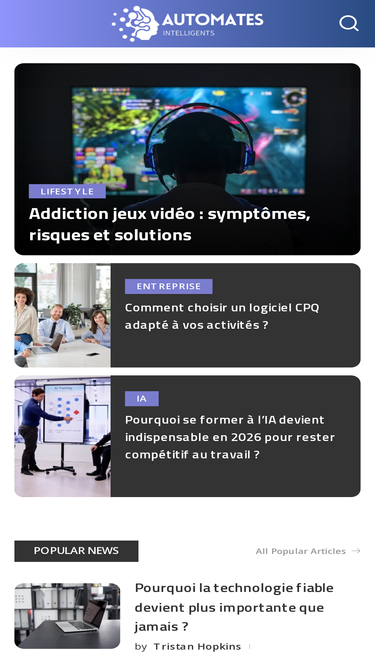 Automates Intelligents est un espace d’exploration, de réflexion et de vulgarisation autour de l’intelligence artificielle, de ses promesses et de ses dérives. Ici, on parle d’algorithmes, d’automatisation, d’éthique, de modèles génératifs… mais surtout d’impact sur notre quotidien. Qui suis-je ? Je m’appelle Tristan Hopkins. Expert et passionné d’intelligence artificielle depuis plus de 10 ans, j’ai décidé de créer ce site pour partager une veille active, poser les bonnes questions, et rendre compréhensibles des sujets souvent trop techniques ou déshumanisés. Mon approche est simple : croiser la technique avec le sens. Car derrière chaque algorithme se cache une intention, une responsabilité, une influence. Et parce qu’il est urgent de mieux comprendre ces technologies qui façonnent déjà le monde de demain. Pourquoi ce site ? Automates Intelligents n’a pas vocation à être neutre, ni sensationnaliste. Il s’agit d’un regard personnel, parfois critique, souvent émerveillé, toujours documenté. Vous y trouverez : des analyses et décryptages sur les évolutions de l’IA, des réflexions éthiques et sociétales, des dossiers thématiques et interviews, et parfois même une pointe de science-fiction. Me contacter Une question, une remarque, une collaboration ? Vous pouvez me joindre à l’adresse suivante : contact@automatesintelligents.com.
