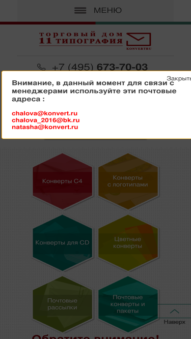 86%«тд 11 типография» предлагает заказать конверты для писем. осуществляем печать изделий стандартных форматов на различных типах бумаги. изготовление бумажных конвертов производится на профессиональном оборудовании.