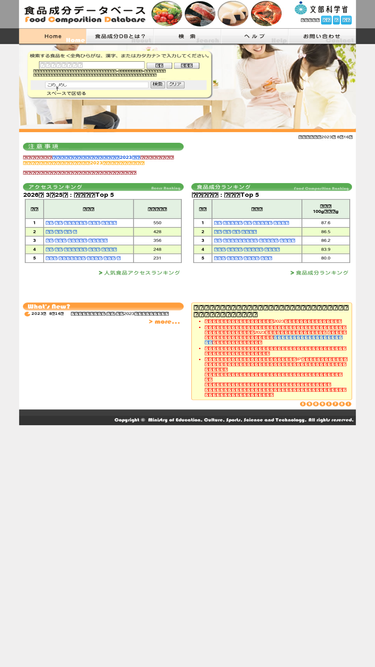 食品成分データベースは、食品成分に関するデータをインターネットを通じて提供しているものです。
