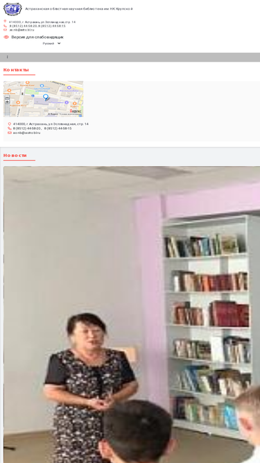 Сайт Астраханской областной научной библиотеки им. Н.К. Крупской