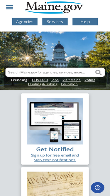 maine.gov - official site includes links to services available online, governor, state agencies, legislature, us congressional delegation, state parks, and tax information.