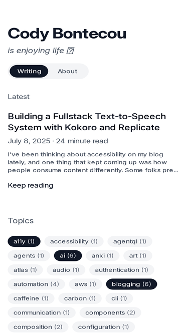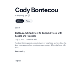 Technical blog by Cody Bontecou covering Vue.js, Nuxt 3, AI integration, web development, and software engineering.