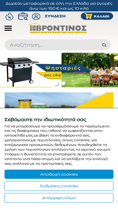 Βρείτε εργαλεία, δομικά υλικά, χρώματα, βερνίκια, πατώματα, πλακάκια, πόρτες, παράθυρα, είδη υγιεινής, έπιπλα μπάνιου, ηλεκτρολογικά, και πολλά ακόμα μόνο στον Βροντινο