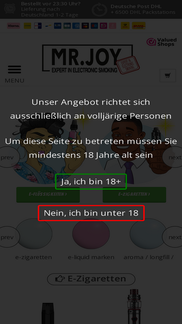 Größtes Sortiment an E-Zigaretten und E-Liquids in Deutschland. Heute vor 23:30 Uhr bestellt, morgen geliefert.