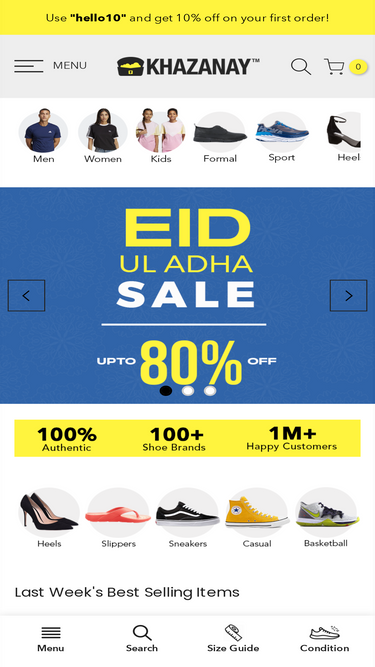 Product Detail Shoe Size: EUR 44 / UK 9.5 / PAK 9.5 / USA 10 Actual unedited pictures of the product - What you see is what you get Color: 100% Authentic & Genuine product - All items sold at Khazanay are personally inspected by our team for originality Imported from USA Not a Fake / Not a First Copy / Not a Replica Pre-owned and pre-used We offer 7 days easy return/exchange policy in case if there is a size issue or you are not satisfied with the product Condition Guide PREMIUM + Item is brand new and hasn't been worn before. PREMIUM Item is in almost brand-new condition. EXCELLENT Item has very little signs of wear. VERY GOOD Item has visible signs of wear and use.