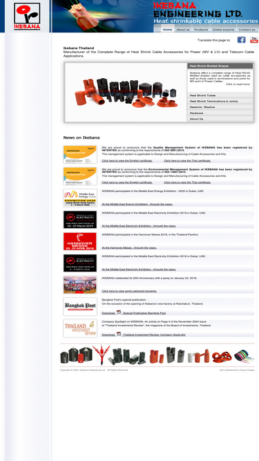100%ikebana engineering ltd. is a manufacturer of heat shrink molded shapes, tubes, terminations, joints, sealants, mastics and related hardware for power and telecom cable applications