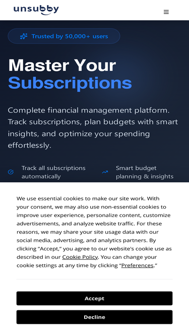 unsubby is the solution to cancel all your subscriptions. quickly find the company you want to cancel and save time and money.