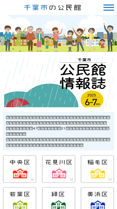 公民館は、地域の生活文化向上をめざし、市民ひとりひとりが豊かな人間性を培い、心豊かなまちづくりを進めるための教育機関です。 千葉市内に、現在47館の公民館(内21館に公民館図書室)が設置されています。 各区に中核公民館(松ケ丘、幕張、小中台、千城台、誉田、稲浜)を設置し、区内の公民館相互の連携を図っています。