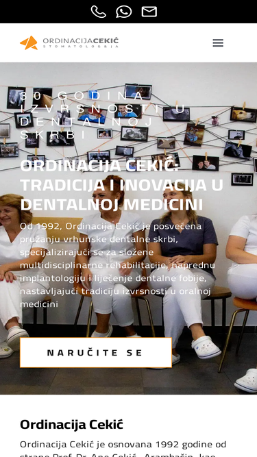 30 Godina Izvrsnosti u Dentalnoj Skrbi Ordinacija Cekić: Tradicija i Inovacija u Dentalnoj Medicini Od 1992, Ordinacija Cekić je posvećena pružanju vrhunske dentalne skrbi, specijalizirajući se za složene multidisciplinarne rehabilitacije, naprednu implantologiju i liječenje dentalne fobije, nastavljajući tradiciju izvrsnosti u oralnoj medicini Naručite se