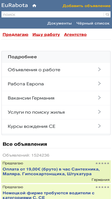 Объявления по трудоустройству в Европе