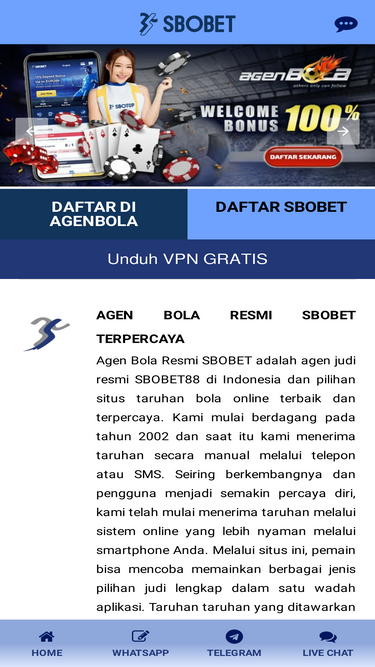 sbobet adalah agen resmi agen bola berlisensi resmi di indonesia. jangan ragu segera daftar akun disini untuk taruhan judi bola online, slot & permainan live casino agen bola