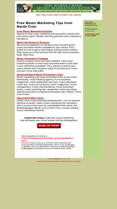 free music marketing tips for solo musicians, duos and small groups. articles on how to promote music, book reviews, music business directory, tips for unsigned bands. subscribe for free tips on how to sell more cds.