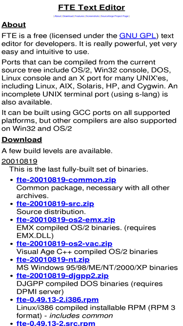 homepage for fte: the programmer's folding text editor