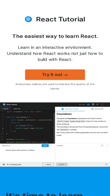 react tutorial is the easiest, most interactive way to learn & practice modern react online. learn in an interactive environment. understand how react works not just how to build with react.