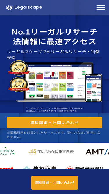 Legalscape(リーガルスケープ)は、業界最大級の法律情報データベースとAIリサーチ機能を備えたリーガルリサーチ・判例検索プラットフォームです。信頼できる法情報に最速でアクセスできるリーガルリサーチAIで法務チームの業務を変革します。