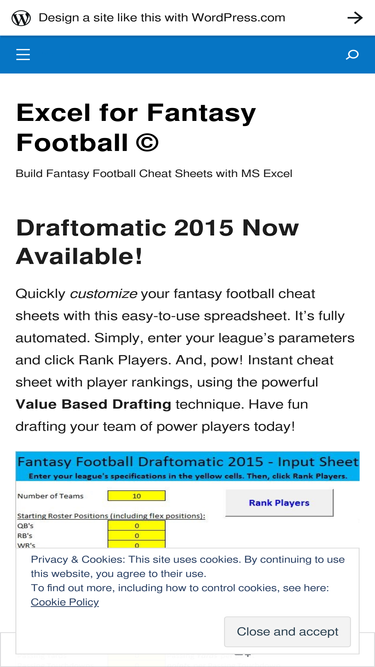 Fantasy Football Draft Buddy creates custom cheat sheets for your fantasy league and tracks your draft. Includes projections, ADP, and depth chart updates.