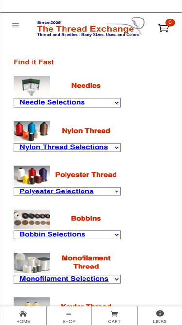 99%the thread exchange specializes in the kinds of thread and needles not found in stores and other sites. we have huge selections of nylon, polyester, kevlar, and robison=anton threads