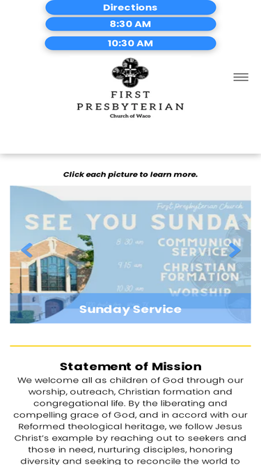 75%Join First Presbyterian Church in Waco for worship & outreach. We embrace diversity & promote environmental stewardship.