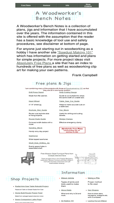 a site for all woodworkers from experienced to novice, offers plans, shop jigs and much information, including an online catalogue.