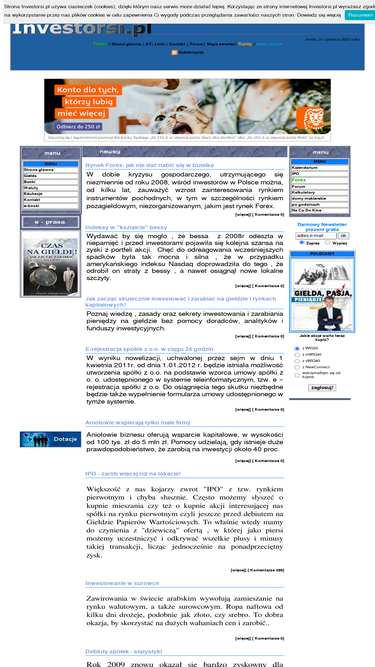 investorsi to giełda, rynek forex, rynkek pierwotny ipo. inwestuj w akcje, waluty, indeksy i kontrakty terminowe. oferty domów maklerskich i banków. wykresy spółek i walut. ebooki i książki oraz kursy o giełdzie. opinie o spółkach i akcjach.